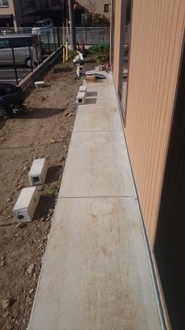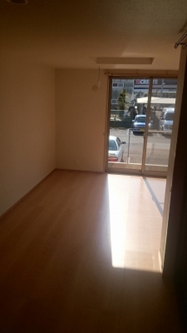 バス道路沿いで交通量の多い立地です。外観はコンクリート打ちっ放しです。
